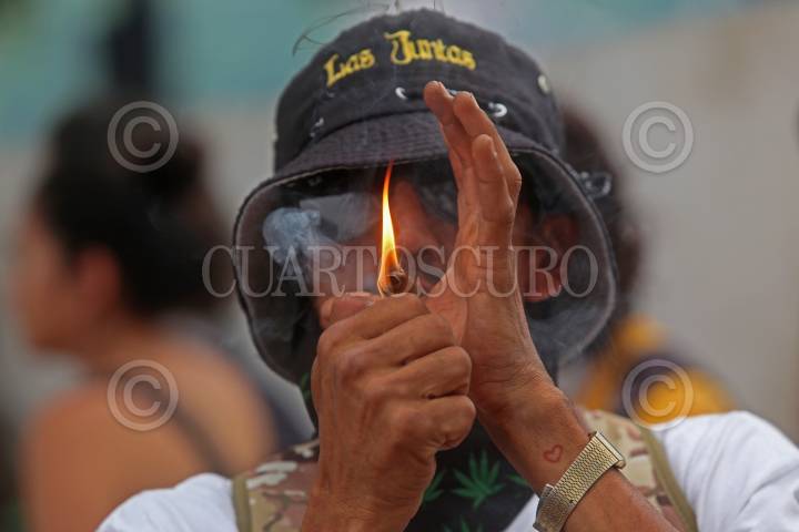 Un hombre a favor del uso recreativo y medicinal de la marihuana, enciende un cigarro de la hierba antes mencionada.