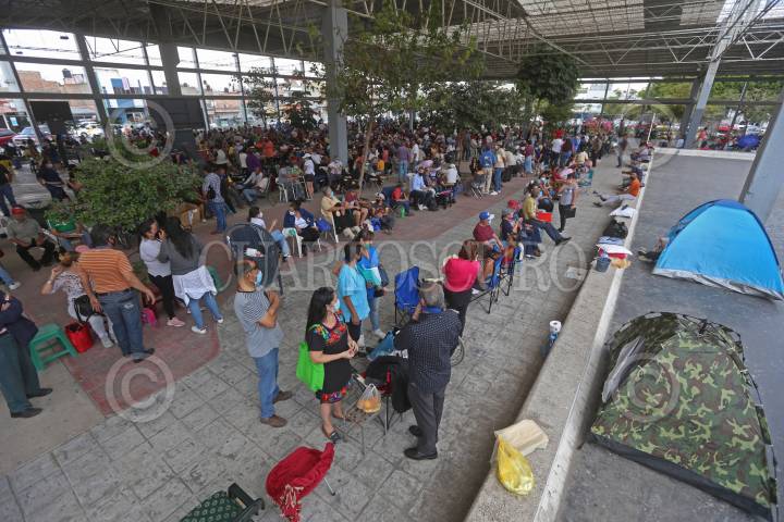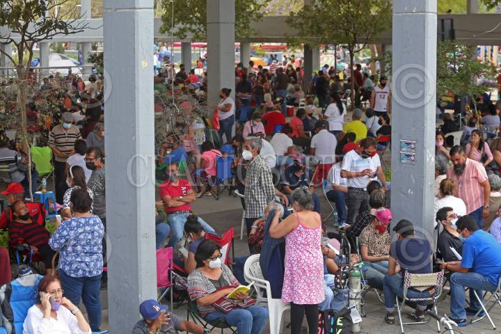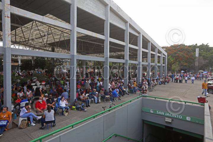 Cientos de personas hacen fila en el Parque San Jacinto, uno de los módulos donde el día de mañana se estará aplicando la vacuna contra el Covid-19.