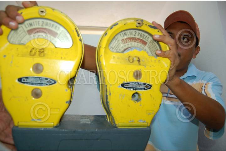 ACAPULCO, GUERRERO, 03AGOSTO2009.- La dirección de parquímetros denunció que han dejado de ingresar mensualmente a las arcas del ayuntamiento de Acapulco 28 mil pesos, al existir grupos de delincuentes de los llamados franeleros o “viene viene“ que reciben ese dinero a cambio de cuidar carros de las personas que se estacionan en la vía pública utilizando desde alambres u otro instrumento que meten al parquímetro evadiendo el pago de monedas. FOTO: MARINO D. VALDÉS/CUARTOSCURO.COM