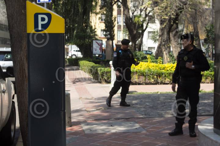 CIUDAD DE MÉXICO, 06FEBRERO2018.- Continúa la presencia de elementos policiales en las inmediaciones de la colonia tabacalera, para la instalación de parquímetros. Los colonos se han manifestado con la colocación de mantas y pancartas donde expresan su rechazó a la colocación de dichos aparatos. FOTO: GALO CAÑAS /CUARTOSCURO.COM