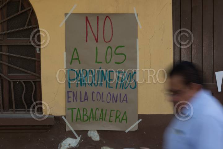 CIUDAD DE MÉXICO, 06AGOSTO2018-. Vecinos de la colonia Tabacalera siguen mostrando su inconformidad con los parquímetros, protestando con pancartas en las ventanas de casas y negocios. FOTO: ANDREA MURCIA /CUARTOSCURO.COM