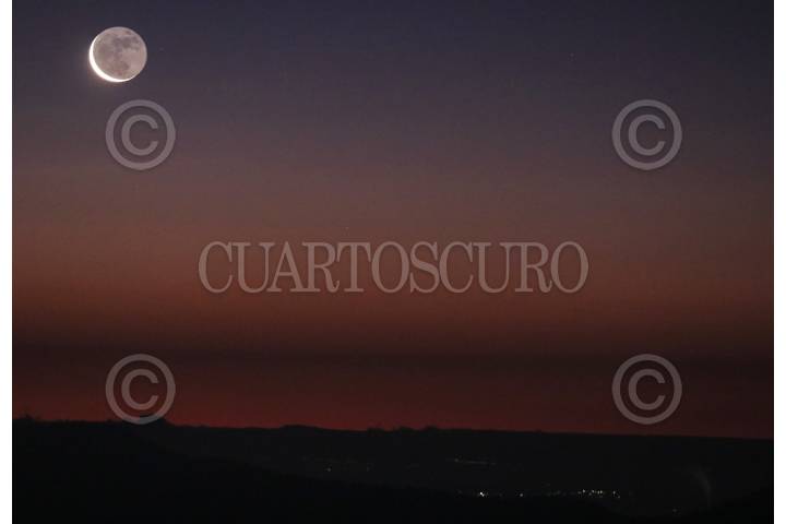 La luna en su fase menguante emerge por el oriente durante el amanecer.