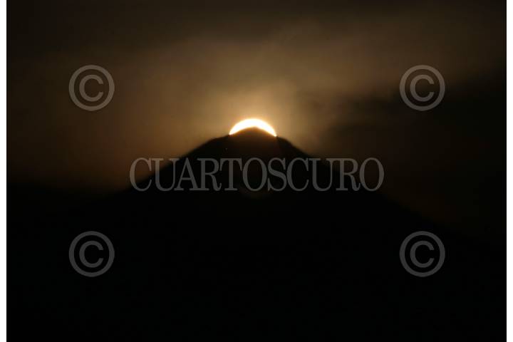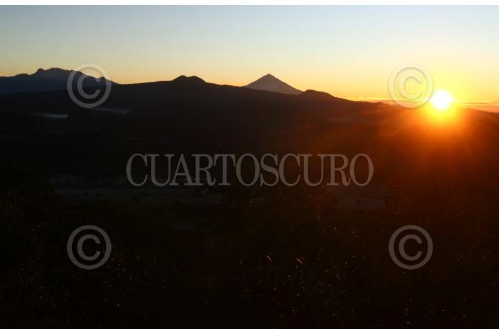 El sol emerge detrás del cráter del volcán Popocatépetl.