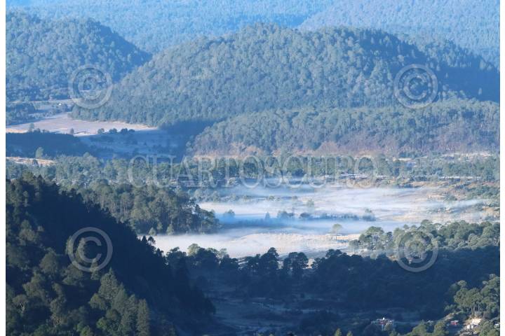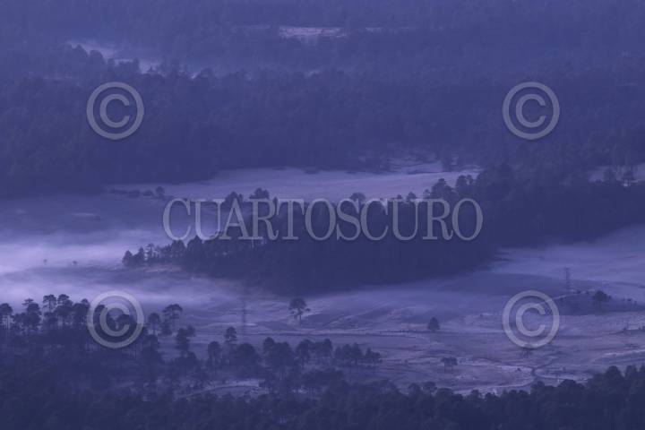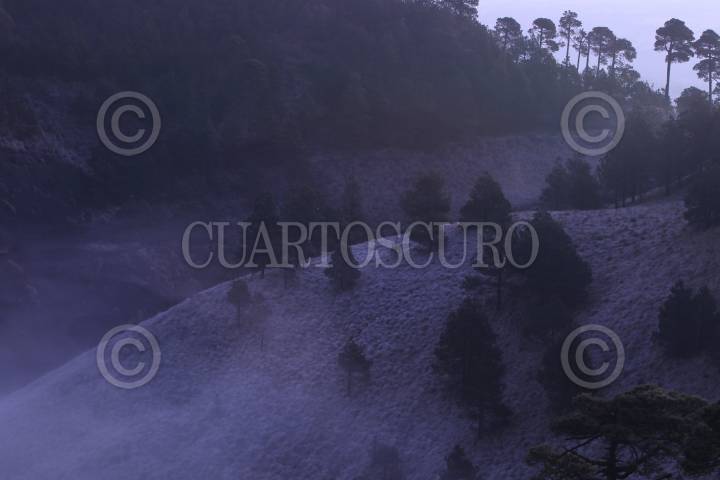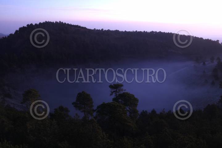 La neblina cubre el cráter del volcán inactivo El Pelado, en la zona boscosa de Tlalpan.