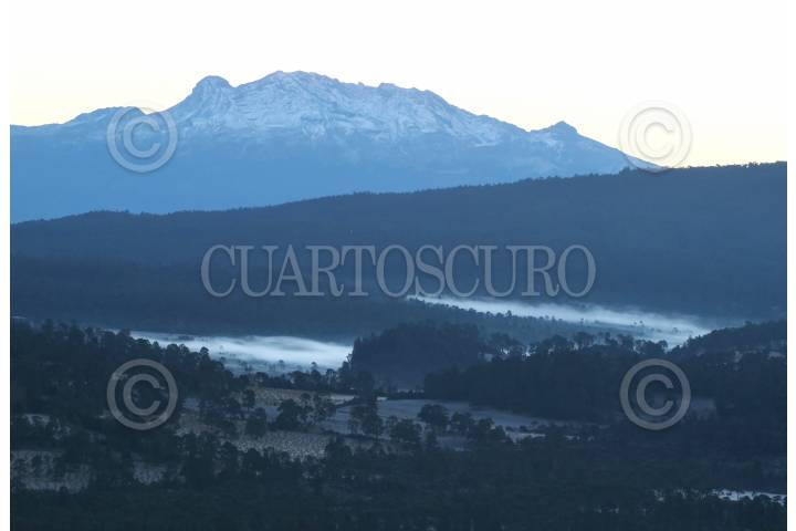 CIUDAD DE MÉXICO, 29DICIEMBRE2023.- El volcán Iztaccíhuatl durante la mañana de este día, imagen tomada desde el cráter del volcán inactivo Acopiaxco, ubicado en las cercanías de la población de Parres el Guarda, en la delegación Tlalpan. Al sur de la capital del país, en la colindancia con el estado de Morelos y el Estado de México se encuentra el Campo Volcánico Chichinautzin constituido por más de 120 volcanes monogenéticos (conos de escoria, derrames de lava fisúrales, domos y volcanes en escudo), dentro de un área de 2680 km2. FOTO: MARGARITO PÉREZ RETANA /CUARTOSCURO.COM