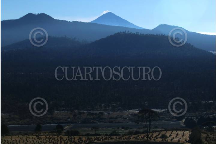 CIUDAD DE MÉXICO, 29DICIEMBRE2023.- El volcán Popocatépetl durante la mañana de este día, imagen tomada desde el cráter del volcán inactivo Acopiaxco, ubicado en las cercanías de la población de Parres el Guarda, en la delegación Tlalpan. Al sur de la capital del país, en la colindancia con el estado de Morelos y el Estado de México se encuentra el Campo Volcánico Chichinautzin constituido por más de 120 volcanes monogenéticos (conos de escoria, derrames de lava fisúrales, domos y volcanes en escudo), dentro de un área de 2680 km2. FOTO: MARGARITO PÉREZ RETANA /CUARTOSCURO.COM