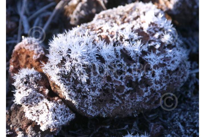 CIUDAD DE MÉXICO, 29DICIEMBRE2023.-Una piedra de tezontle cubierta de cristales de hielo, imagen tomada en el cráter del volcán inactivo Acopiaxco, ubicado en las cercanías de la población de Parres el Guarda, en la delegación Tlalpan. Al sur de la capital del país, en la colindancia con el estado de Morelos y el Estado de México se encuentra el Campo Volcánico Chichinautzin constituido por más de 120 volcanes monogenéticos (conos de escoria, derrames de lava fisúrales, domos y volcanes en escudo), dentro de un área de 2680 km2. FOTO: MARGARITO PÉREZ RETANA /CUARTOSCURO.COM
