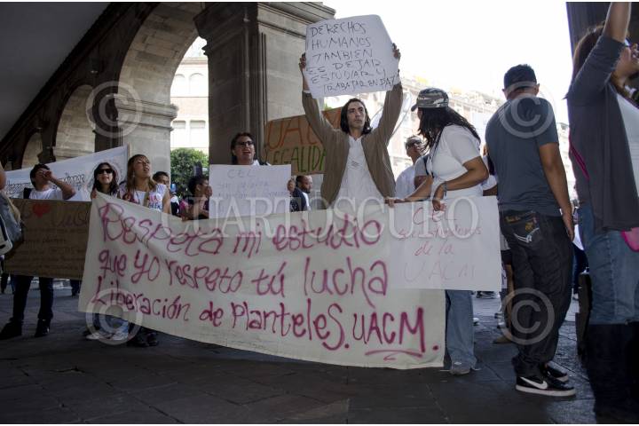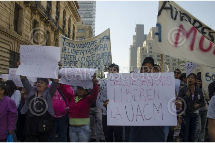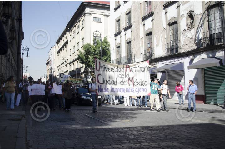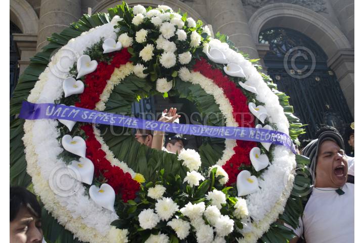 MÉXICO, D.F., 25OCTUBRE2012.- Estudiantes, maestros y administrativos de los cinco planteles de la Universidad Nacional Autónoma de la Ciudad de México UACM marcharon para exigir que se retomen las clases. El contingente partió del Palacio de Bellas Artes, e hicieron una parada en la Asamblea Legislativa en donde colocaron una corona de flores en representación de la perdida del semestre, según lo señalaron. Esta casa de estudios permanece sin actividades escolares desde el 28 de agosto por un conflicto en la elección de su consejo universitario. FOTO: SANDRA PÉREZ /CUARTOSCURO.COM