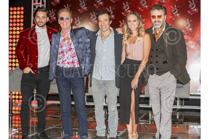 CIUDAD DE MÉXICO, 07MARZO2017.- Maluma, Emanuel, Miguel Ángel Fox, Olivia Peralta y Manuel Mijares son parte del nuevo programa posaron la “Voz Kids 2017”, quienes ofrecieron detalles de la transmisión que se estrenará el 12 de marzo por el canal 2. FOTO: ANTONIO CRUZ /CUARTOSCURO.COM