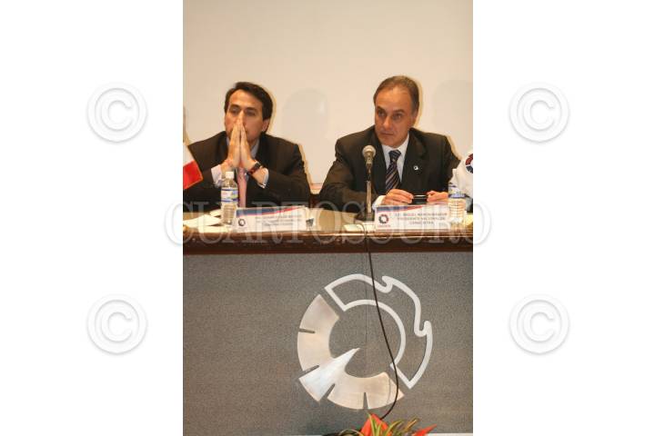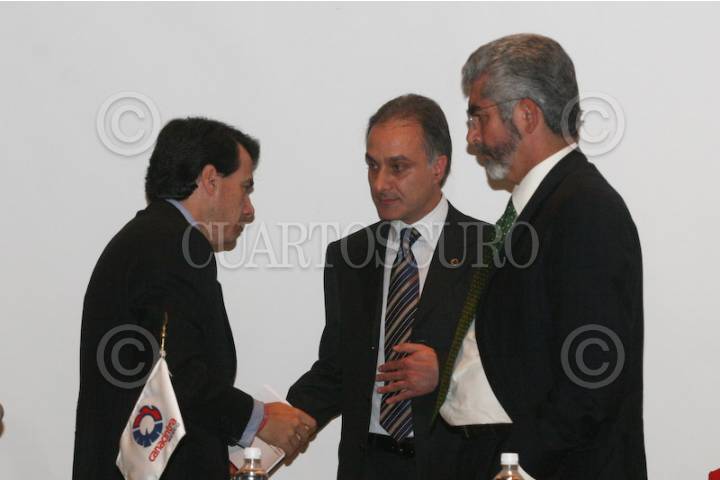 MÉXICO, D.F., 26AGOSTO2008.- Gerardo Ruíz Mateos secretario de economia saluda a Miguel Morún Manzur presidente de la Canacintra donde donde participo en la reunión del consejo consultivo nacional, abordando temas como la inseguridad. FOTO: SÁSHENKA GUTIÉRREZ/CUARTOSCURO.COM