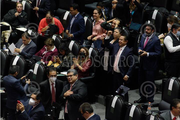 Ignacio Mier, e integrantes del grupo parlamentario de Morena, celebran la aprobación en lo general y en lo particular el proyecto de Decreto que reforma, adiciona y deroga diversas disposiciones de la Ley del Impuesto sobre la Renta, de la Ley del Impuesto al Valor Agregado, de la Ley del Impuesto sobre Producción y Servicios, de la Ley Federal del Impuesto sobre Automóviles Nuevos, del Código Fiscal de la Federación y otros ordenamientos.
