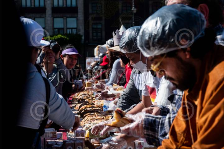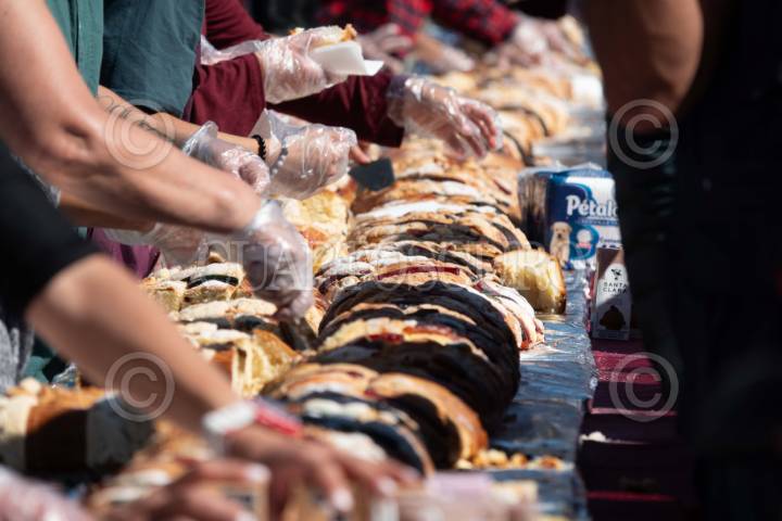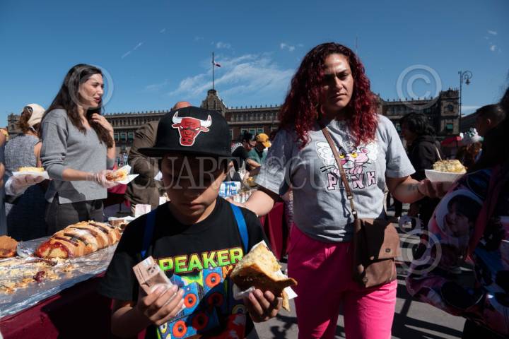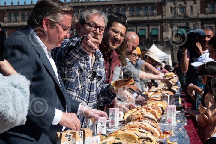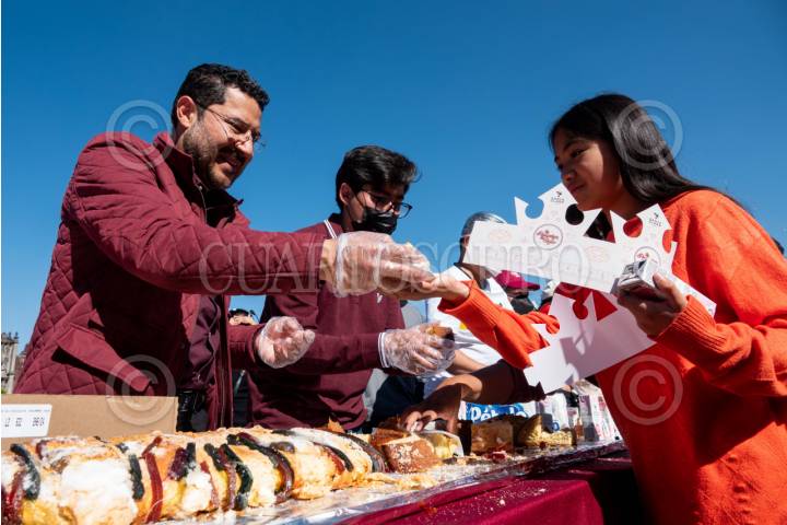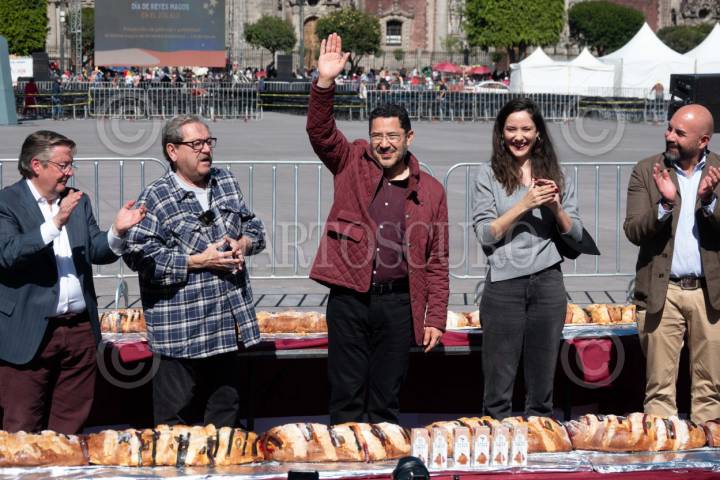CIUDAD DE MÉXICO, 06ENERO2024.- Martí Batres Guadarrama, jefe de gobierno de la Ciudad de México, encabezó la partida de la mega rosca en el Zócalo. Fueron alrededor de 15 mil pedazos los que se repartieron entre las familias que asistieron. FOTO: GALO CAÑAS/CUARTOSCURO.COM