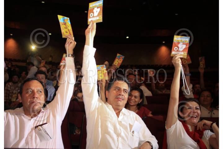 MORELIA, MICHOACAN 02AGOSTO2009.-Jesus Zambrano, Guadalupe Acosta Naranjo, Jesus Ortega presidente nacional del PRD durante el 4 pleno ordinario del VII congreso nacional del sol azteca que se dio por terminado ayer por la noche en donde el lider partidista hablo de su ratitficación como líder del partido, ademas de la presentación de propuesta de expulsion de Andres Manuel Lopez Obrador FOTO:SÁSHENKA GUTIÉRREZ/CUARTOSCURO.COM