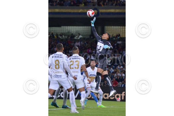 Alfredo Talavera, portero de los Pumas desvía un centro en partido de ida de las semifinales de la Liga de Campeones Concacaf "Concachampions" 2022 frente al Cruz Azul.