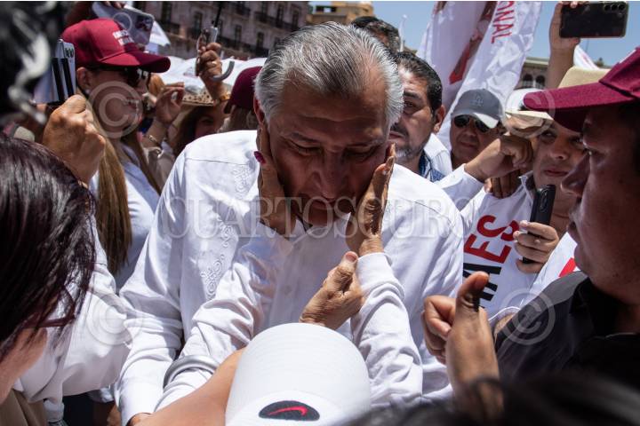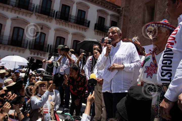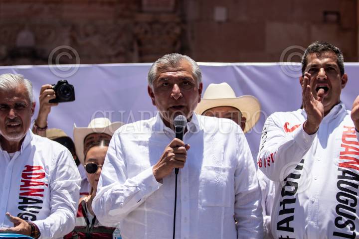 Adán Augusto López, ex secretario de Gobernación y precandidato para coordinar la 4ta Transformación por el partido Morena a la presidencia de la República, durante una “visita informativa” en la Plaza de Armas de la capital zacatecana.