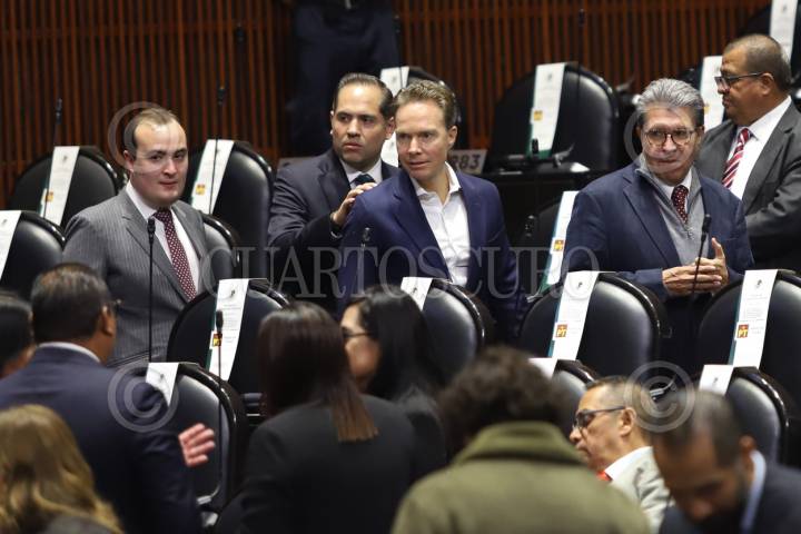 CIUDAD DE MÉXICO, 23JUNIO2025.- Los senadores de Morena, Ricardo Monreal y Enrique Vázquez y el senador del Partido Verde, Manuel Velasco, llegan al pleno de la Cámara de Diputados para la instalación del periodo extraordinario de sesiones. FOTO: DANIEL AUGUSTO/ CUARTOSCURO.COM