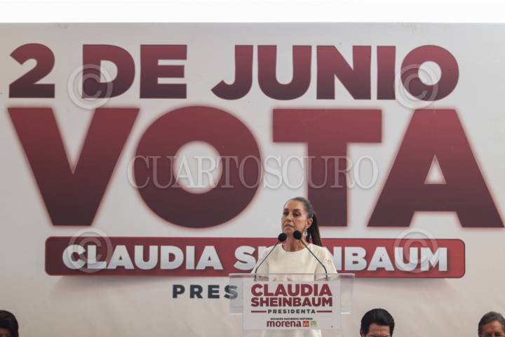 ZUPANGO, ESTADO DE MÉXICO, 12MAYO2024.- Claudia Sheinbaum Pardo, candidata a la presidencia de la República por Morena encabezó mitin en el centro de Zupango. FOTO: ANDREA MURCIA /CUARTOSCURO.COM