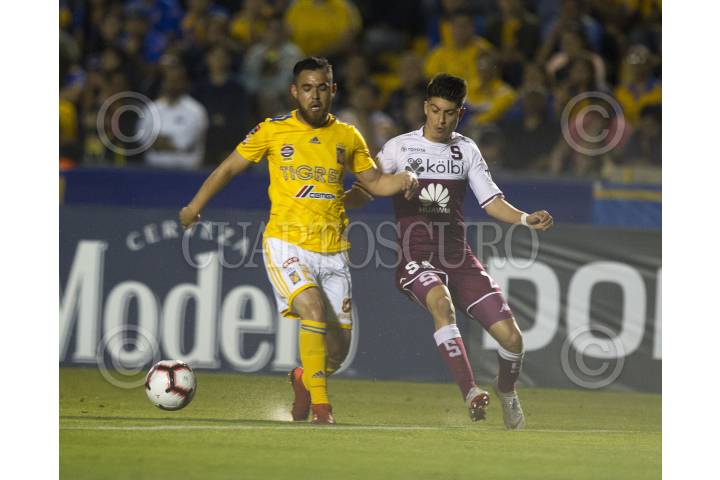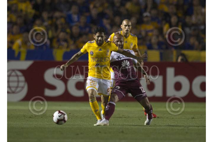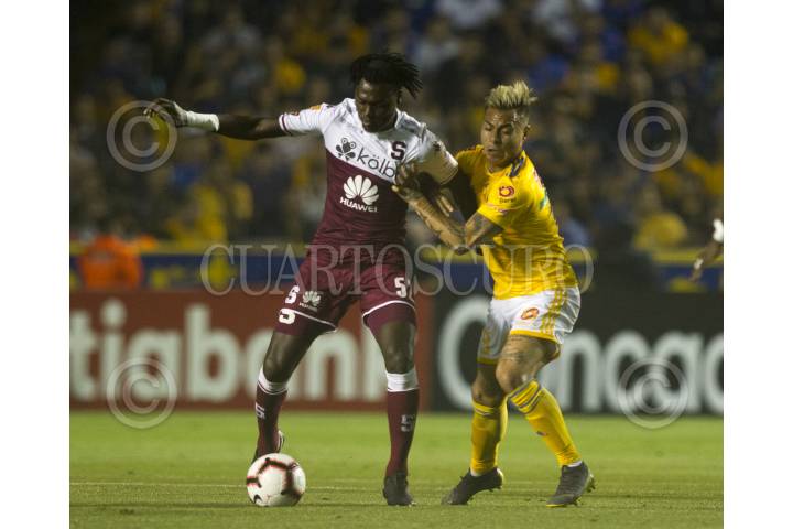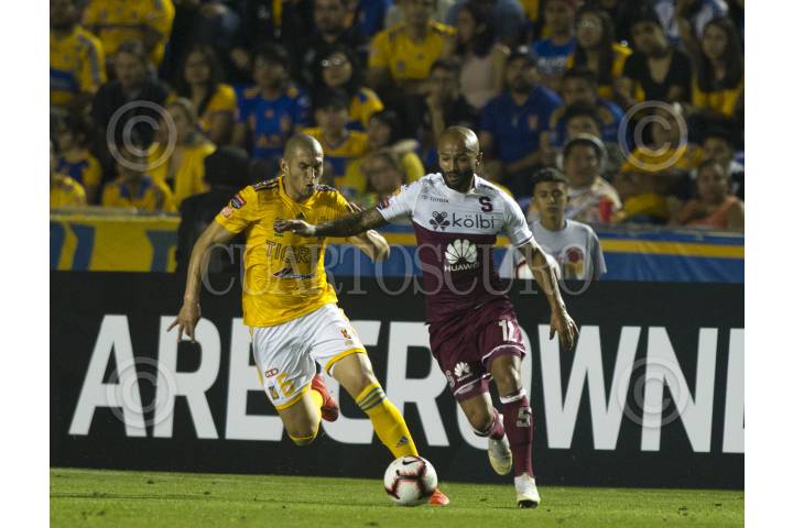MONTERREY, NUEVO LEÓN, 26FEBRERO2019.- Javier Aquino del equipo de los Tigres de la UANL, se disputa el balón con Ricardo Blanco del equipo de Saprissa de Costa Rica, en el estadio Universitario, partido correspondiente a la vuelta de los octavos de final de la Concacaf, Liga de Campeones 2019. Marcador Final: Tigres: 5 - Saprissa: 1 Marcador Global: Tigres: 5 - Saprissa: 2 FOTO: GABRIELA PÉREZ MONTIEL /CUARTOSCURO.COM