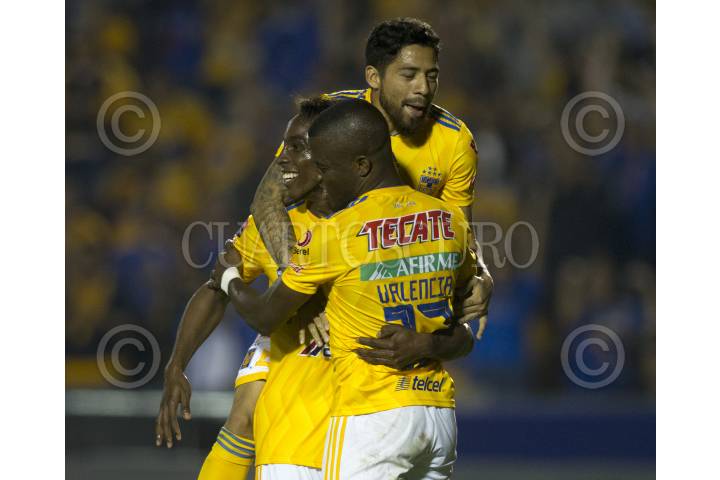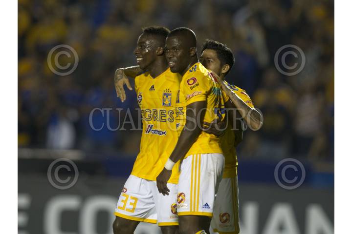 MONTERREY, NUEVO LEÓN, 26FEBRERO2019.- Jugadores del equipo de los Tigres de la UANL, celebran el gol, ante el equipo de Saprissa de Costa Rica, en el estadio Universitario, partido correspondiente a la vuelta de los octavos de final de la Concacaf, Liga de Campeones 2019. Marcador Final: Tigres: 5 - Saprissa: 1 Marcador Global: Tigres: 5 - Saprissa: 2 FOTO: GABRIELA PÉREZ MONTIEL /CUARTOSCURO.COM