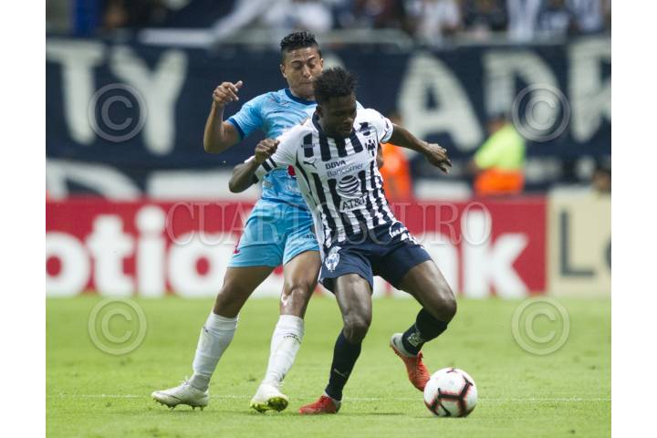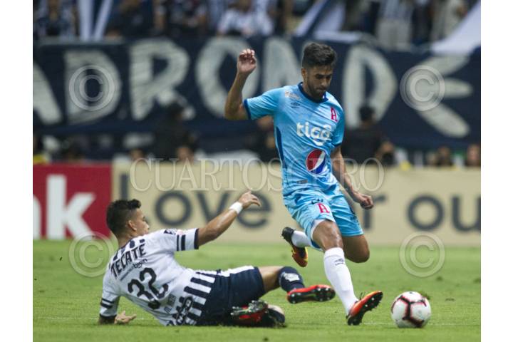 MONTERREY, NUEVO LEÓN, 27FEBRERO2019.- Maximiliano Meza del equipo de los Rayados del Monterrey, se disputa el balón con Rafael García del equipo de Alianza FC del Salvador, en el estadio BBVA Bancomer, partido correspondiente a la vuelta de los octavos de final de la Concacaf, Liga de Campeones 2019. Marcador Final: Monterrey: 1 - Alianza: 0 Marcador Global: Monterrey: 1 - Alianza: 0 FOTO: GABRIELA PÉREZ MONTIEL /CUARTOSCURO.COM