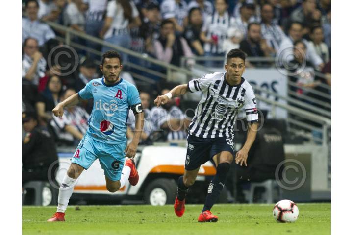 MONTERREY, NUEVO LEÓN, 27FEBRERO2019.- Avilés Hurtado del equipo de los Rayados del Monterrey, se disputa el balón con Narciso Orellana del equipo de Alianza FC del Salvador, en el estadio BBVA Bancomer, partido correspondiente a la vuelta de los octavos de final de la Concacaf, Liga de Campeones 2019. Marcador Final: Monterrey: 1 - Alianza: 0 Marcador Global: Monterrey: 1 - Alianza: 0 FOTO: GABRIELA PÉREZ MONTIEL /CUARTOSCURO.COM