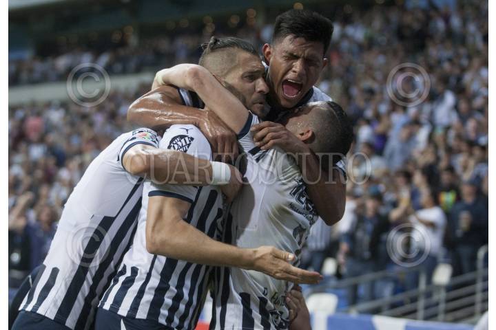 MONTERREY, NUEVO LEÓN, 27FEBRERO2019.- Jugadores del equipo de los Rayados del Monterrey, celebran el gol, ante el equipo de Alianza FC del Salvador, en el estadio BBVA Bancomer, partido correspondiente a la vuelta de los octavos de final de la Concacaf, Liga de Campeones 2019. Marcador Final: Monterrey: 1 - Alianza: 0 Marcador Global: Monterrey: 1 - Alianza: 0 FOTO: GABRIELA PÉREZ MONTIEL /CUARTOSCURO.COM