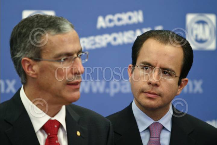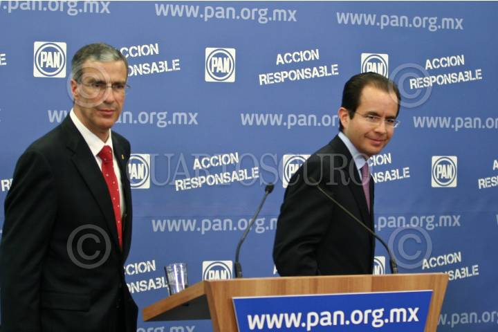 MÉXICO, D.F., 02SEPTIEMBRE2009.- El senador José Gonzalez Morfin y Cesar Nava, diputado federal y dirigente nacional del PAN durante una conferencia de prensa que ofrecieron a los medios en el centro ejecutivo nacional de este partido. FOTO: RODOLFO ANGULO/CUARTOSCURO.COM