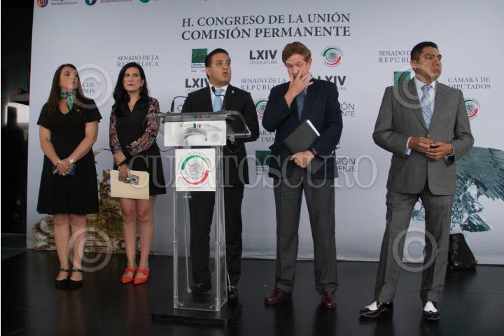 CIUDAD DE MÉXICO, 24JULIO2019.- Senadores del grupo parlamentario Partido Acción Nacional (PAN) ofrecieron conferencia de prensa en el patio principal del Senado de la República. FOTO: ANDREA MURCIA /CUARTOSCURO.COM