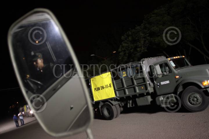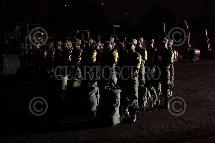 MÉXICO, D.F., 16JUNIO2010.- Elementos del Ejercito Mexicano de la Fuerza de Apoyo salieron esta madrugada del Campo Militar 1-A para apoyar para casos de desastre ante el inicio de la temporada de huracanes y como medida preventiva para reaccionar de manera oportuna para tomar acciones dirigidas a controlar el riesgo y evitar o mitigar el impacto destructivo de los desastres. Dichos elementos, materiales y equipo partieron rumbo a Vallalodid, Yucatan y hacia Tonalá, Chiapas, todo como parte del plan DN - III - E. FOTO: RODOLFO ANGULO/CUARTOSCURO.COM