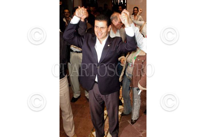 ZACATECAS, ZACATECAS, 04JULIO2010.- Miguel Alonso Reyes, candidato de la Alianza Primero Zacatecas (PRI-PVEM-Nueva Alianza) a la gubernatura del estado, ofreció una conferencia de prensa para declararse ganador de la elección a partir de las encuestas de salida que realizaron Televisa y encuestas Mitosky, y que lo ponen 20 puntos arriba. FOTO: ADOLFO VALTIERRA/CUARTOSCURO.COM