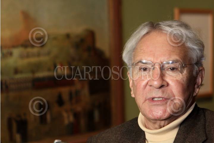 MÉXICO, D.F., 07JULIO2010.- El historiador Enrique Florescano durante el recorrido a medios de la exposición Imágenes de la Patria, una muestra con 91 obras, entre pintura, escultura, gráfica y documentos que dará cuenta de cómo se ha representado ese y otros conceptos en el transcurso de la historia del país; que estará abierta al público a partir del 8 de julio y hasta el 5 de septiembre en el Museo Nacional de Arte. FOTO: RODOLFO ANGULO/CUARTOSCURO.COM