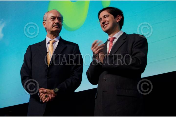 MÉXICO, D.F., 19JULIO2011.- Francisco Gil Díaz, presidente de Telefónica Movistar México y Dionisio Pérez-Jacome, secretario de Comunicaciones y Transportes (SCT); ofrecieron una conferencia a los asistentes a la inauguración de la tercera edición de Campus Party México y que se llevará a cabo del 18 al 24 de Julio de 2011 en el Centro de Exposiciones Bancomer. FOTO: MISAEL VALTIERRA/CUARTOSCURO.COM