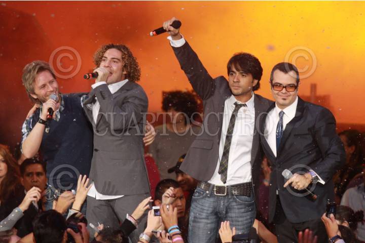 MÉXICO, D.F., 06DICIEMBRE2009.- Noel, David Bisbal, Luis Fonsi y Alex Sintek durante su participación ayer por la noche en el Auditorio Nacional, donde se realizó el cierre del Teleton donde se supero la cifra del año donde pasadas las dos de la mañana se dió a conocer la cifra final de 443 millones, 341 mil, 815 pesos. FOTO: SÁSHENKA GUTIÉRREZ/CUARTOSCURO.COM