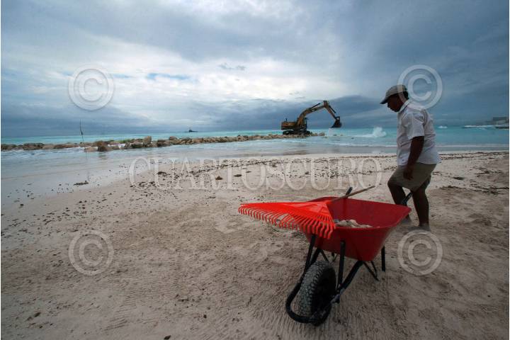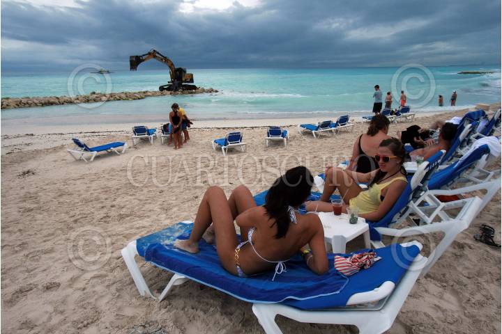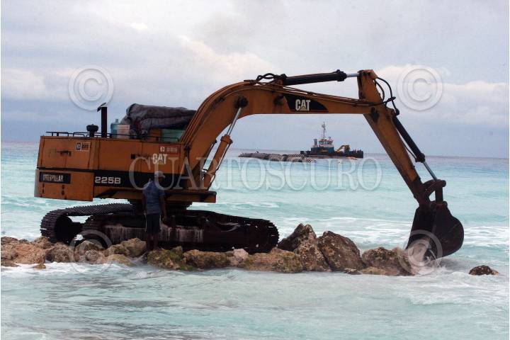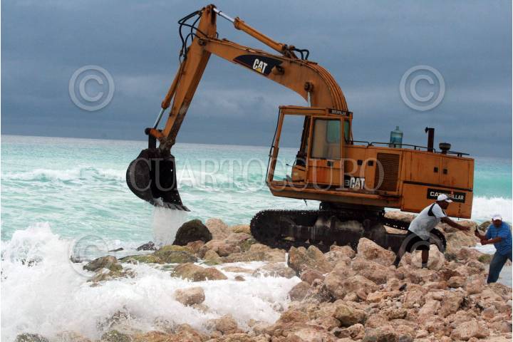 CANCÚN, QUINTANA ROO 25NOVIEMBRE2009.- Aspectos de los trabajos de retiro de espigones en los hoteles royal y gran caribe real que meses pasados clausuro la profepa. FOTO: AMARANTA PRIETO/CUARTOSCURO.COM