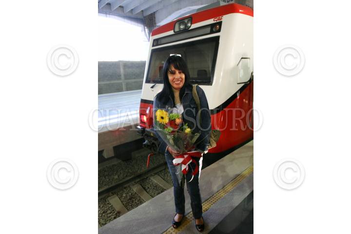 MÉXICO, D.F., 01JUNIO2008.- Gabriela Castro Cervantes, fue la primera pasajera en abordar el Tren Suburbano en la estación de Lechería. Hoy en punto de las 07:00 a.m. arrancaron las operaciones comerciales del Tren Suburbano que corre de la estación de Buenavista a Lechería en el Estado de México, la tarifa es de 5.50 si es distancia corta y de 12.50 si es distancia larga. FOTO: MOISÉS PABLO/CUARTOSCURO.COM