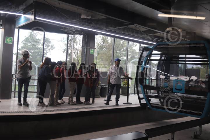 CIUDAD DE MÉXICO, 24SEPTIEMBRE2024. Estudiantes de una escuela cercana a una estación de Cablebús acudieron a la inauguración de la Línea 3 que corre del Pueblo de Santa Fe a el Complejo Cultural Los Pinos. FOTO: EDGAR NEGRETE LIRA/CUARTOSCURO.COM