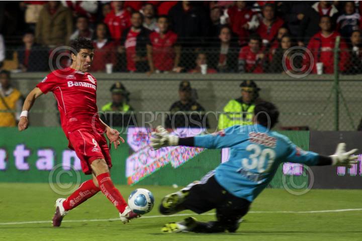 TOLUCA, ESTADO DE MÉXICO, 15MAYO2010.- Hector Mancilla de los Diablos del Toluca tira a porteria durante el encuentro en contra de los Tuzos del Pachuca durante el partido de vuelta de las semifinales del torneo Bicentenario del fútbol mexicano que se realizo en el estadio Nemesio Diez ganando los Diablos del Toluca 1 gol por 0 pasando así a la gran final. FOTO: RODOLFO ANGULO/CUARTOSCURO.COM