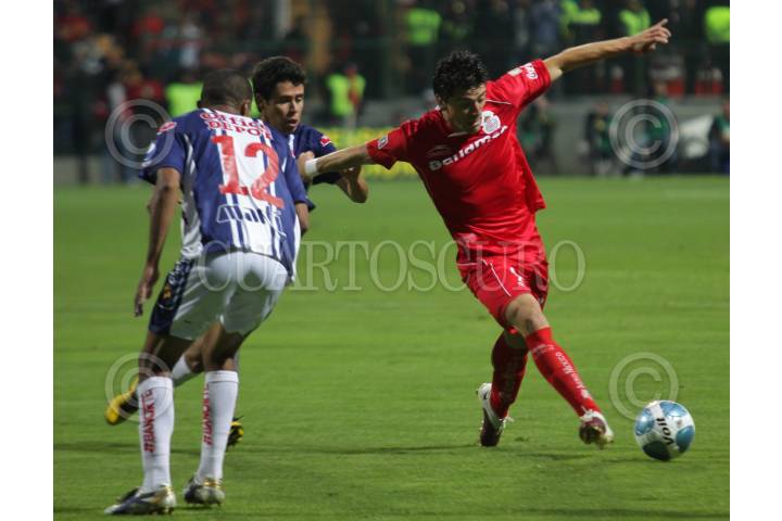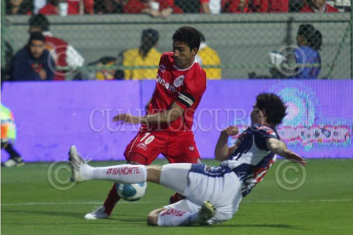 TOLUCA, ESTADO DE MÉXICO, 15MAYO2010.- Carlos Esquivel de los Diablos del Toluca intenta rematar durante el encuentro en contra de los Tuzos del Pachuca durante el partido de vuelta de las semifinales del torneo Bicentenario del fútbol mexicano que se realizo en el estadio Nemesio Diez ganando los Diablos del Toluca 1 gol por 0 pasando así a la gran final. FOTO: RODOLFO ANGULO/CUARTOSCURO.COM