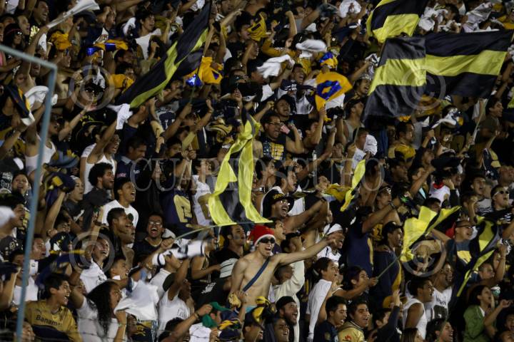 MÉXICO, D.F., 20NOVIEMBRE2010.- Aficionados de los Pumas de la UNAM celebran la anotación de su equipo en contra de la Maquina Celeste del Cruz Azul durante el encuentro que se realizo en el Estadio Azul; partido de cuartos de final que ganó Pumas 2 goles por 0 pasando así a semifinales. FOTO: RODOLFO ANGULO/CUARTOSCURO.COM