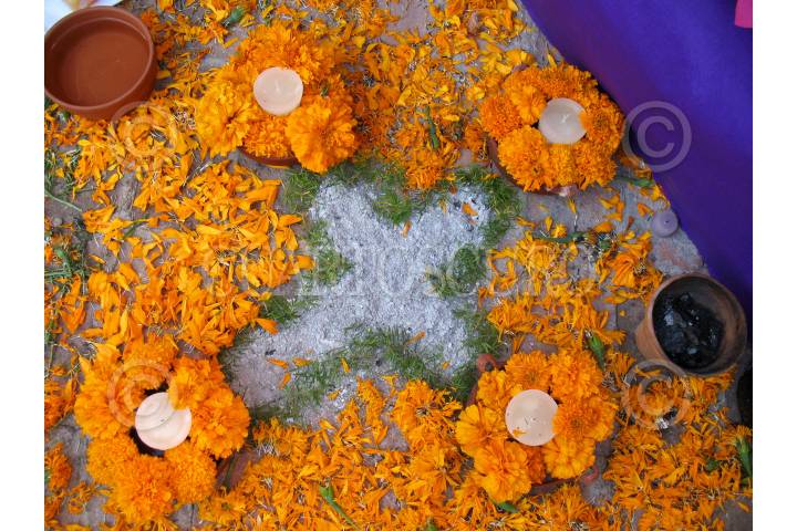 AJIJIC, JALISCO; 02 de NOVIEMBRE 2008.- Ya todos armaron su altar de muertos y los vendedores de Cempasúchil pasaron en camioneta por las calles del pueblo anunciando con el megáfono la venta de las flores para acabar de despacharla, ya que esa flor solo se vende en esta corta temporada. FOTO: MARIA DI PAOLA BLUM/CUARTOSCURO.COM