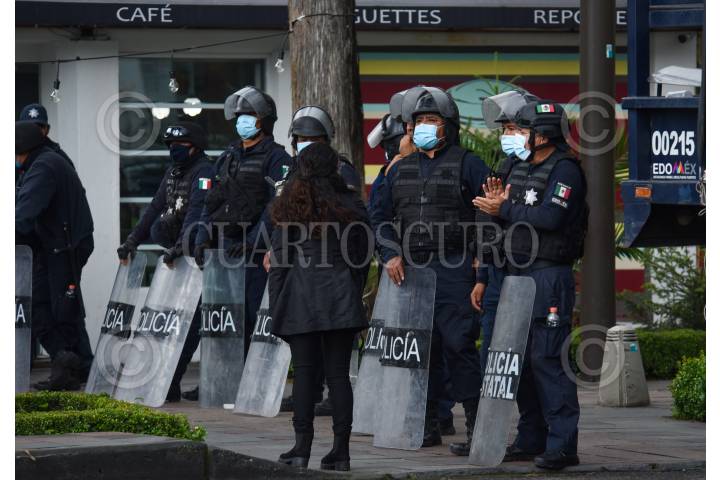 Por varias horas permaneció cerrado Paseo Colón en Toluca ante la presencia de Trabajadores del Sistema Nacional de Salud frente a Casa Estado de México.
