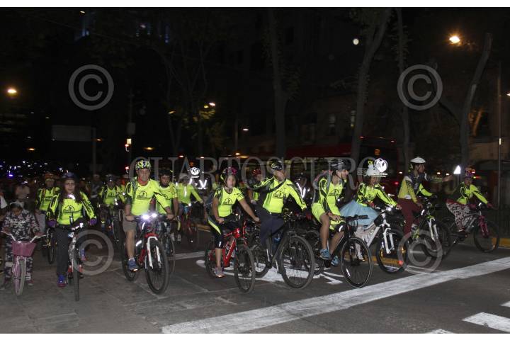 Familias y jóvenes acudieron al Paseo Ciclista Nocturno, que dio inicio en Plaza Tlaxcoaque, en el Centro Histórico y finalizará en la Fuente de Petróleos