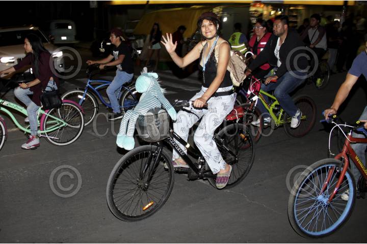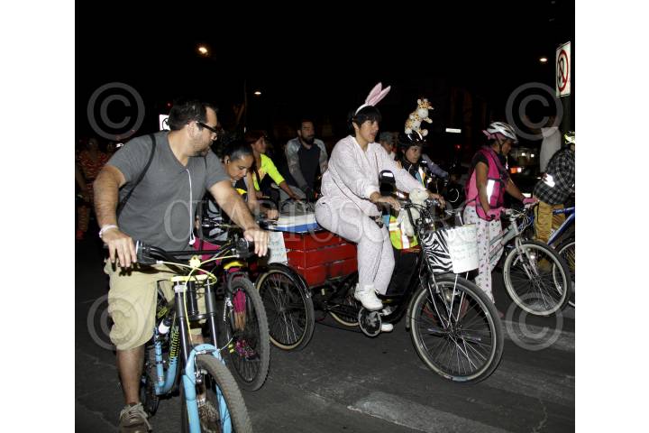 CIUDAD DE MÉXICO, 31MARZO2016.- El último jueves de cada mes se lleva acabo el "Paseo Ciclista Nocturno", el cual parte del Monumento a la Revolución a la explanada de la delegación Gustavo A. Madero, en esta ocasión se invitó a los participantes a asistir en pijama. FOTO: ANTONIO CRUZ /CUARTOSCURO.COM