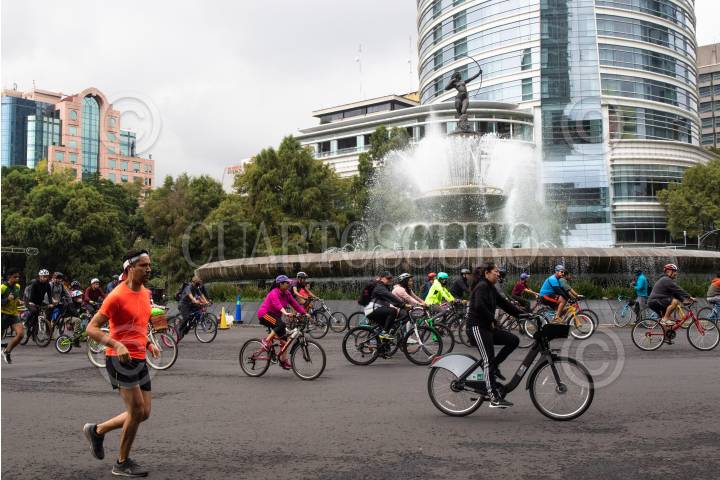 A pesar de la mañana lluviosa capitalinos salieron a rodar y correr en el Paseo Ciclista en avenida Reforma.