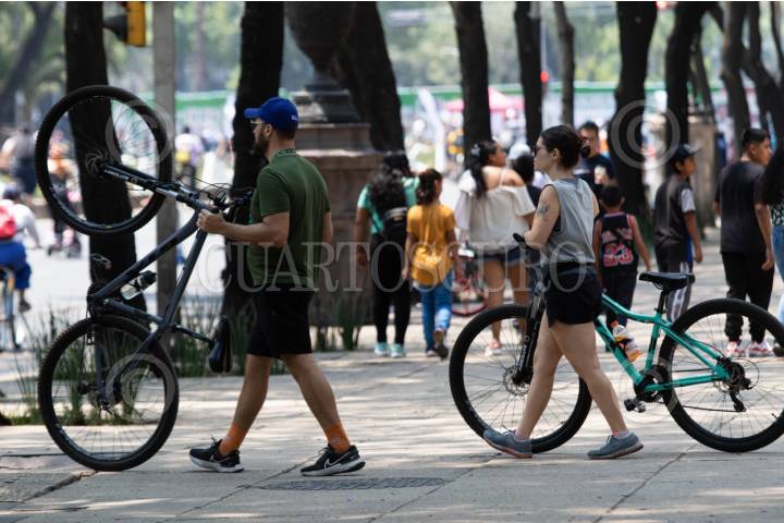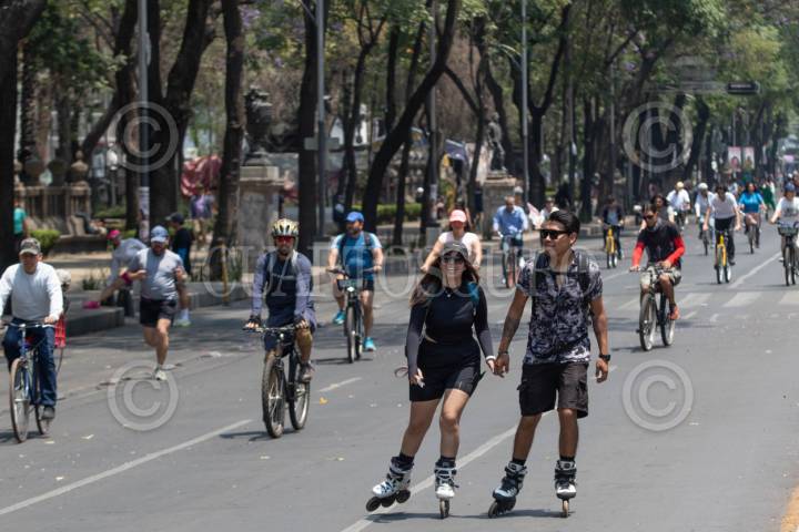 CIUDAD DE MÉXICO, 31MARZO2024.- Capitalinos participaron en el Paseo Ciclista esto a pesar de las altas temperaturas que se dejaron sentir en la ciudad. FOTO: MOISÉS PABLO/CUARTOSCURO.COM