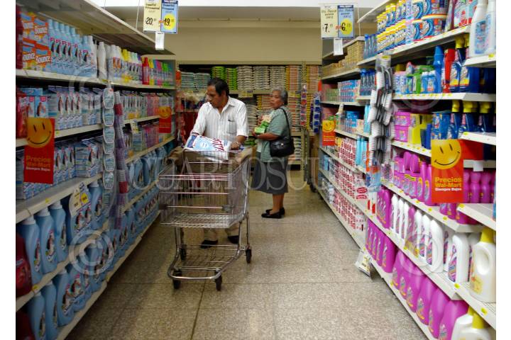 MÉXICO, D.F., 10ENERO2008.- Una pareja busca en el pasillo de los detergentes uno de los productos que compran en el supermercado. FOTO: ISAAC ESQUIVEL/CUARTOSCURO.COM