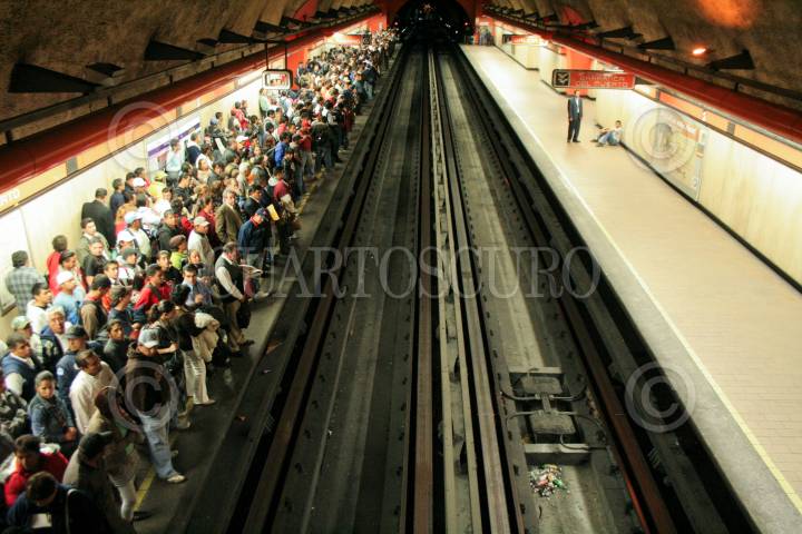 MÉXICO, D.F., 06FEBRERO20009.- En algunas de las estaciones del metro, en las horas pico se registra gran cantidad de gente en espera del sistema de transporte y en la mayoría de los casos al no darse abasto, los andenes se saturan de personas, esto ocurre principalmente en algunas en lineas que utilizan para transbordar a otras direcciones; mientras que del otro lado del pasillo se aprecia que las personas que ocupan el transporte son pocas. FOTO: ENRIQUE ORDÓÑEZ/CUARTOSCURO.COM