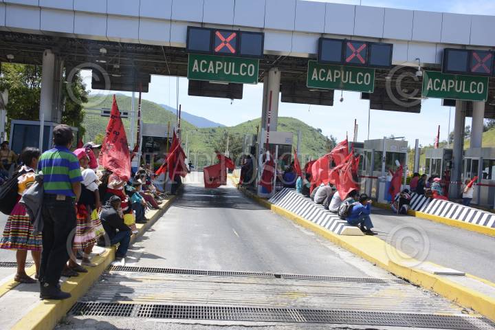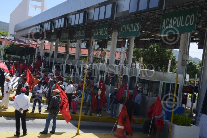 CHILPANCINGO, GUERRERO, 19JULIO2016.- El Frente de Defensa Popular (FDP) tomo la caseta de Palo Blanco de la Autopista del Sol en solidaridad por los profesores que fueron despedidos. Los inconformes dieron paso libre y pidieron cooperación a los automovilistas. FOTO: JOSÉ I. HERNÁNDEZ /CUARTOSCURO.COM