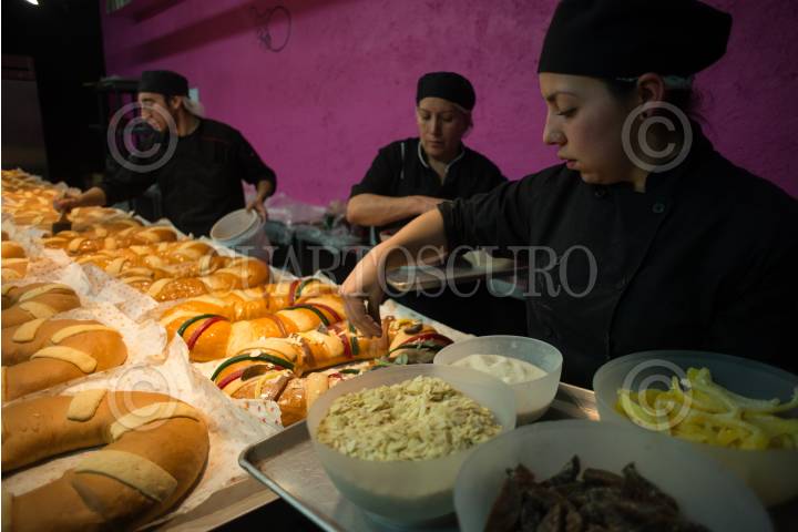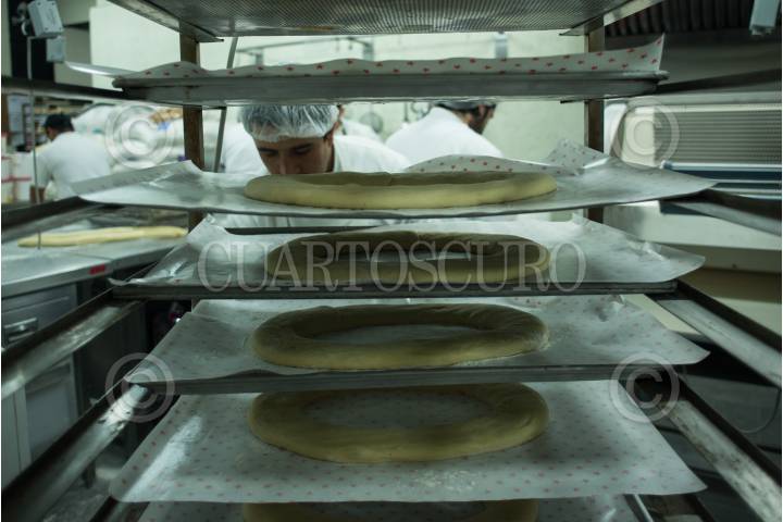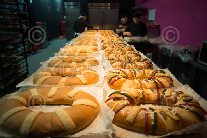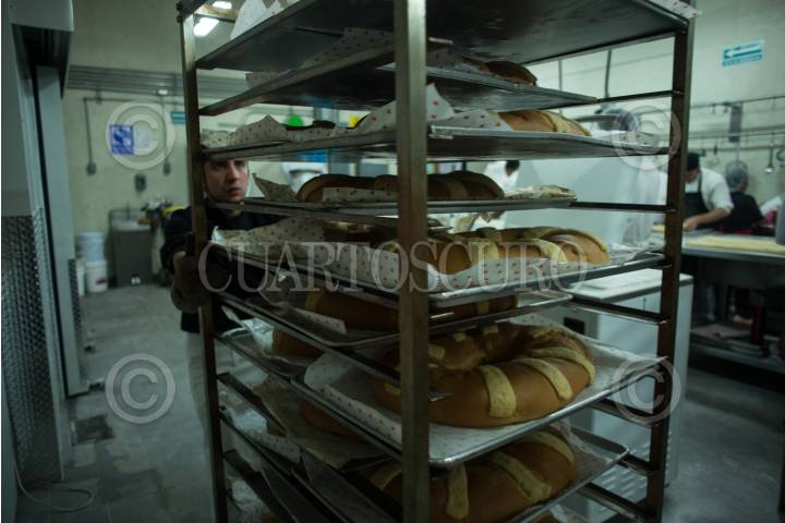MÉXICO, D.F., 03ENERO2015.- El origen de la rosca de reyes esta relacionado con las saturnales romanas (fiestas dedicadas al rey Saturno) aunque en la actualidad algunos lo relacionan con una representación complementaria y comestible de la corona de adviento o en la religión católica con la visita de los tres reyes a Jesús en el pesebre días después de nacer. Las fiestas al dios Saturno tenían como objeto celebrar los días mas largos que empezaban a venir tras el solsticio de invierno. Para estos festejos, se elaboraban unos panes redondos con higo, dátiles y miel, que se repartían por igual entre plebeyos y esclavos. Ya en el siglo III, en el interior del dulce se introducía un haba seca, y el afortunado al que le tocaba era nombrado rey de reyes durante el tiempo que acordaran todos antes de partirla. FOTO: ISABEL MATEOS /CUARTOSCURO.COM