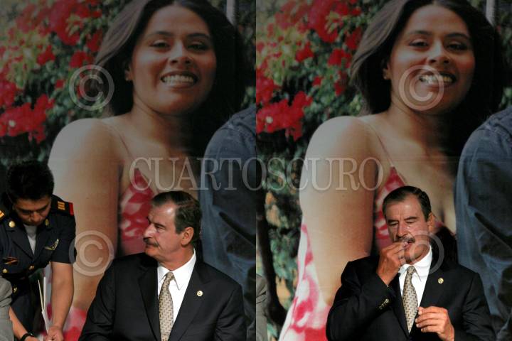 MEXICO, D.F., 20ABRIL2006.- Vicente Fox Quesada, presidente de la República, durante la ceremonia de la XC Sesión Ordinaria de la Honorable Asamblea General del INFONAVIT, en su sede nacional. En la imagen su asistente le pasa una pastilla al presidente. FOTO: Moisés Pablo/CUARTOSCURO.COM